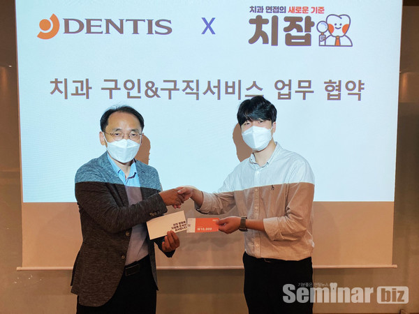㈜덴티스(대표 심기봉)가 최근 치과 구인구직 플랫폼 ‘치잡’과 치과계 구인난 해결 지원을 위한 업무협약을 체결했다.