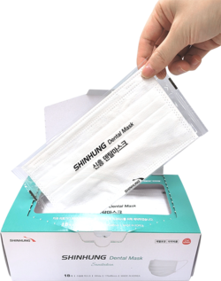 ㈜신흥이 ‘신흥 덴탈마스크 Sanitation’을 출시했다. 개별 포장으로 휴대할 경우 오염과 이물질을 차단해 주는 것이 특징이다.