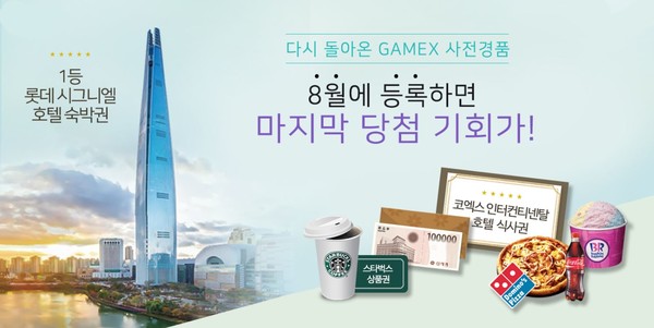 GAMEX 2021 조직위원회(위원장 손영휘, 이하 조직위)는 이번 2차 사전등록 완료 후 8월 2일 1, 2차 사전등록자를 대상으로 경품추첨을 진행했다. 추첨 결과 호텔 숙박권과 식사권, 백화점 상품권, 스타벅스 기프티콘 등 총 207명이 당첨됐다.