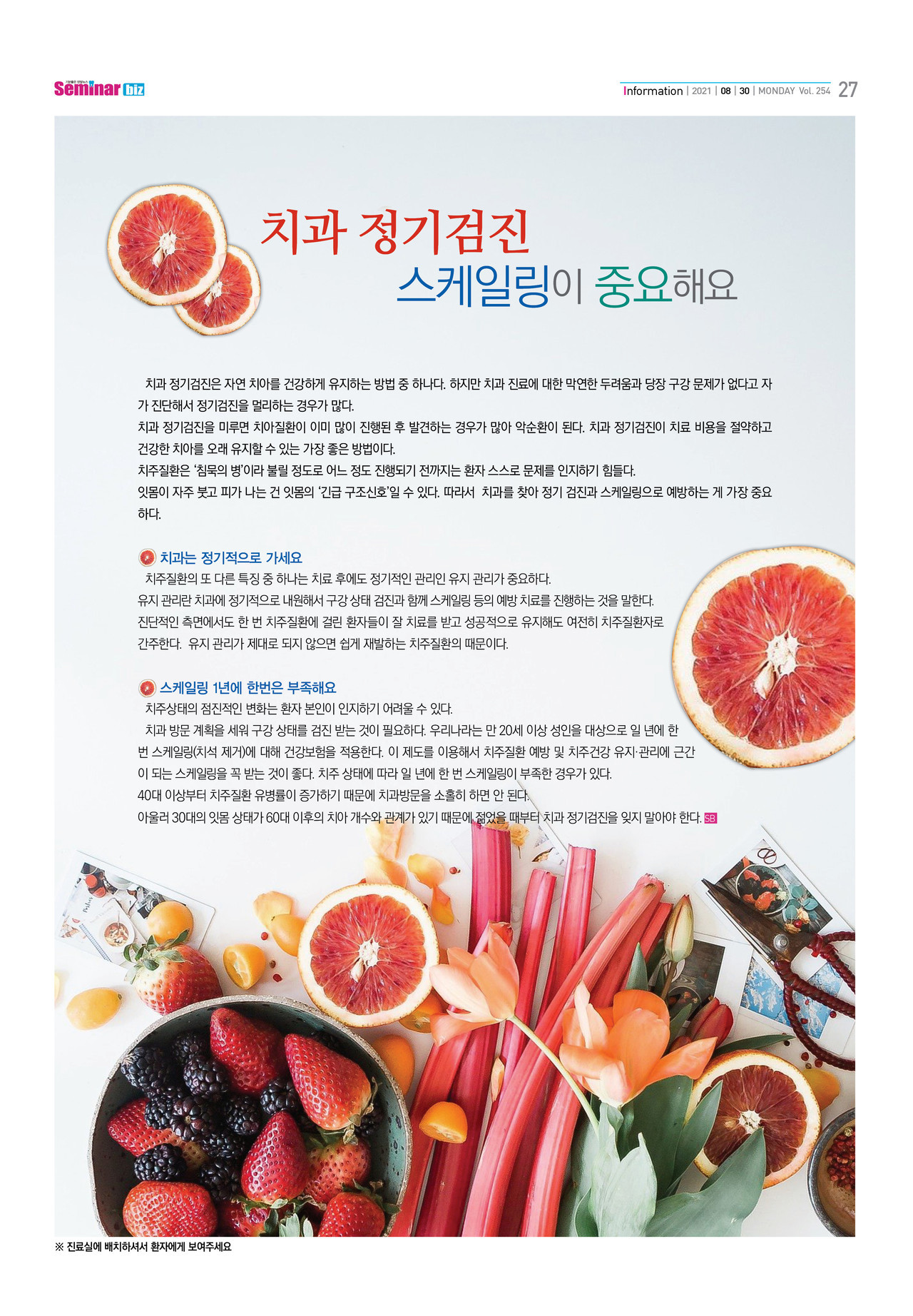 치과 정기검진은 자연치아를 건강하게 유지하는 방법 중 하나다. 하지만 치과 진료에 대한 막연한 두려움과 당장 구강문제가 없다고 자가 진단해서 정기검진을 멀리하는 경우가 많다.