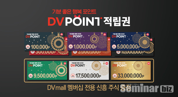 이 중 DV mall 멤버십 회원 전용 950만 포인트, 1,750만 포인트, 3,300만 포인트 적립권구매 시 신흥 주식 50주, 100주, 200주를 각각 증정한다.
