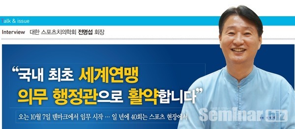 대한스포츠치의학회 전명섭 회장은 한국치과의사로서는 세계 배드민턴연맹 (BWF-Badminton World Fede ration)의 Medical Commissioner 로 지난 7월 IOC로부터 임명받아 오는 10월 7일 덴마크 에서 첫 임무가 시작된다.