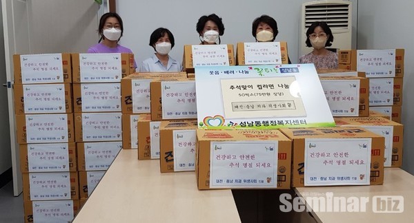 송은주 회장은 “코로나 19 장기화로 모두 어려운 시기이지만 추석 명절을 맞아 이웃 간 사랑이 넘치는 행복한 명절을 만들기 위해 나눔 실천에 앞장서고 따뜻한 마음이 각 가정에 전달되어 풍성한 한가위를 맞이하길 바란다.”는 말을 전했다.