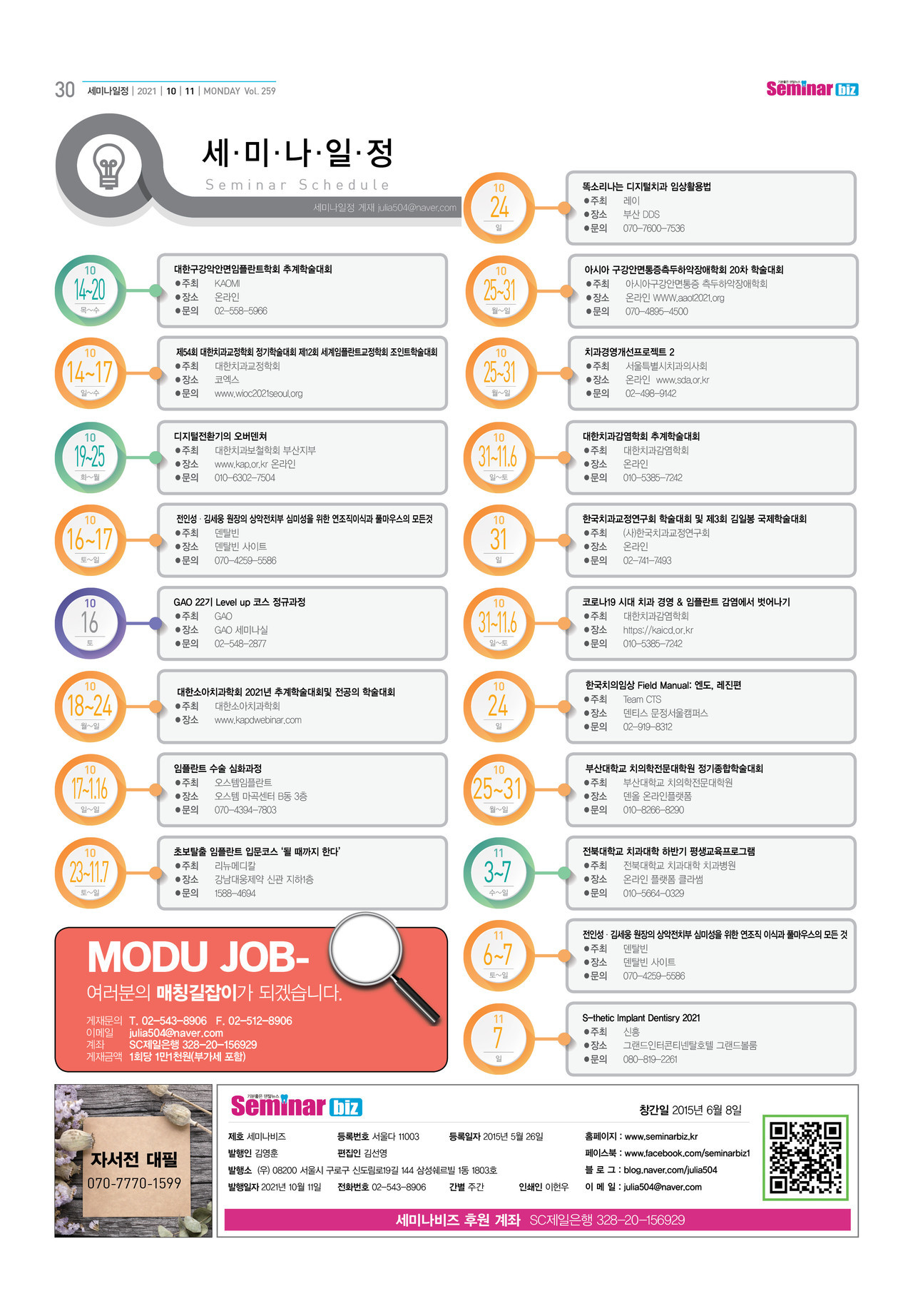 좋아요1훈훈해요0슬퍼요0후속기사 원해요0 [학술일정]제1회국제임플란트학회 월드심포지엄 외 [학술세미나일정] 가톨릭대학교 치과학교실 학술강연회 외 [학술일정] 국민건강보험 일산병원 제 2회 치과학술대회 외 키워드 #대한구강악안면임플란트학회 #디지털전환기의 오버덴쳐 #GAO #전인성원장 #김세웅원장 #덴탈빈 #대한치과교정학회 #대한소아치과학회 #디지털치과 #한국치과교정연구회 #치과신문세미나비즈 #세미나비즈 #대한치과의사협회 세미나비즈 webmaster@seminarbiz.kr 다른기사 보기 저작권자 © 덴탈뉴스 무단전재 및 재배포 금지 당신만 안 본 뉴스 [알파베러정재욱대표] 좋은 제품 검증된 제품만 모은 알파베러 유한 evertis 임플란트 성공 위한 워크샵 진행 “미용치과 안티에이징이 치과의 블루오션” 덴탈스튜디오, 블랙니들홀더 출시 서울대학교치과병원, 키르기스스탄 장애 어린이위한 사랑의 의료봉사 펼쳐 연송캠퍼스 개관10주년 기념식 및 SID 명예의 전당 제막식 네오바이오텍, 즉시로딩 임플란트 ALX-IT 11월 세미나 전국 진행 [알파베러정재욱대표] 좋은 제품 검증된 제품만 모은 알파베러 개의 댓글 회원로그인 작성자 비밀번호 댓글 내용입력 댓글 정렬 최신순 추천순 답글순 BEST댓글 BEST 댓글 답글과 추천수를 합산하여 자동으로 노출됩니다. 닫기 더보기 댓글삭제 삭제한 댓글은 다시 복구할 수 없습니다. 그래도 삭제하시겠습니까? 비밀번호 닫기 댓글수정 댓글 수정은 작성 후 1분내에만 가능합니다. 본문 / 400 비밀번호 닫기 내 댓글 모음 닫기 주요기사 중국 의료기기 1등급 인허가 취득 점빵치과 고민! 한자리서 해결 완성도높은 투명교정 솔루션 나노라이너 치과의사들의 만성고민 해결 신경치료가 혈당과 지방대사까지 개선 골이식 전략과 덴티움 제품 활용 노하우 공유