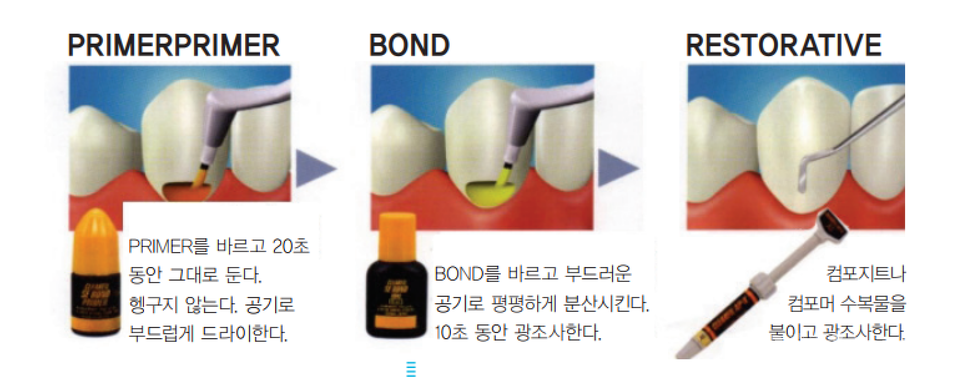 self-etching 본딩제... 술 후 지각과민 우려 없고 처치 후, 행위 수가 청구 가능