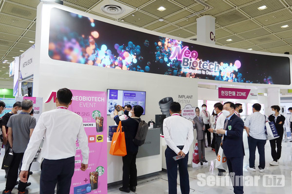 또한 네오의 더엔몰 베스트셀러 및 각종 기자재 AnyCheck, Handpiece, Bone, Membrane, Loupe 등을 전시했고, 네오의 제품을 직접 사용해 볼 수 있도록 현장 판매 존을 마련했다.