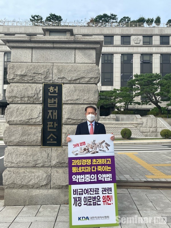 박태근 협회장 이날 1인 시위를 시작으로 치협은 위헌 결정이 날 때까지 릴레이 1인 시위를 진행하면서 헌재 앞을 지킨다는 방침이다.