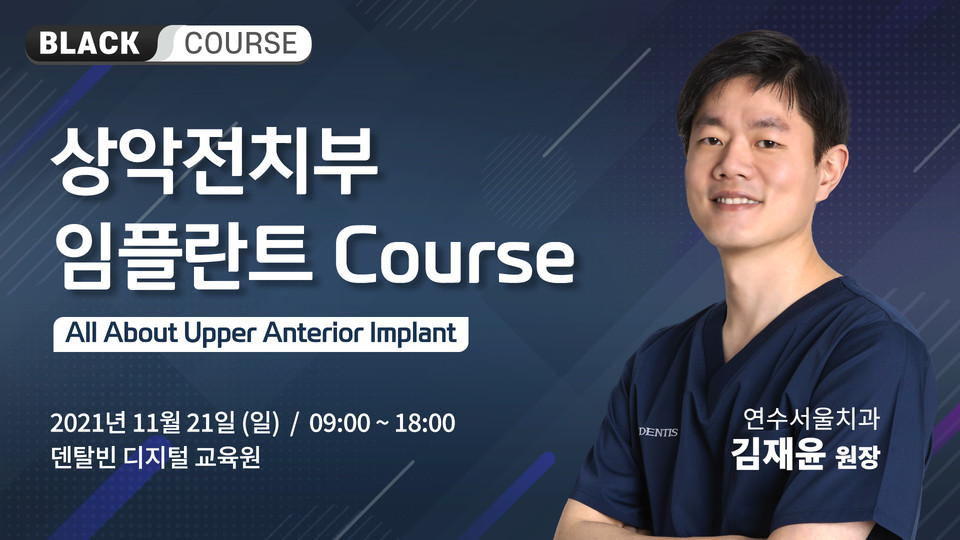 덴탈빈이 오는 11월 21일 덴탈빈 디지털 교육원에서 김재윤(연수서울치과) 원장의 ‘상악 전치부 임플란트 Black-코스’를 개최한다.