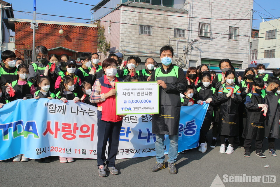 대구광역시 치과의사회(회장 이기호)에서는 11월 7일(일) 오전 10시부터 지역의 소외 계층 이웃에게 따뜻한 정을 담아 겨울나기용 연탄을 전달하는 ‘사랑의 연탄 나눔 행사’를 실시했다.