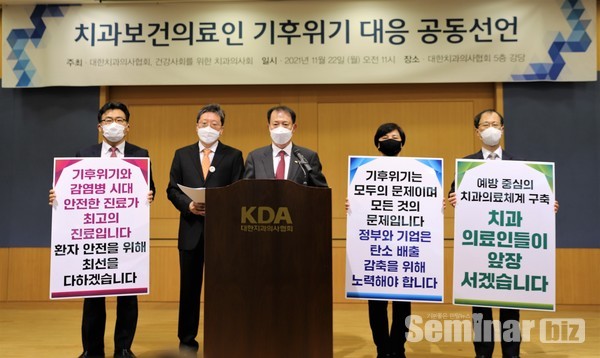 대한치과의사협회(회장 박태근)는 지난 22일 건강사회를 위한 치과의사회와 함께 ‘치과보건의료인 기후위기 대응 공동선언’을 발표했다. 이번 공동선언은 전국 17개 시·도 치과의사회가 적극 지지하며 동참했다.