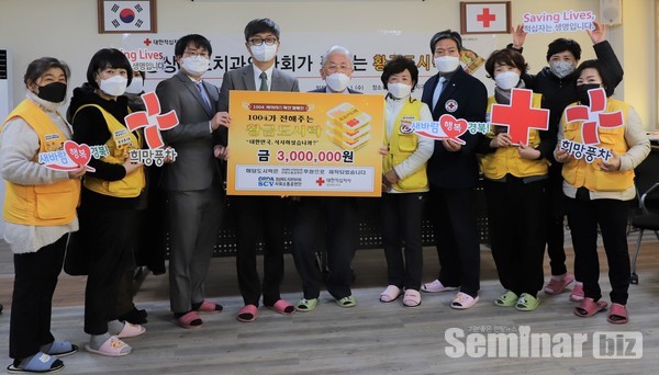 지난 12월 1일 경상북도 치과의사회(회장 전용현)는 적십자사봉사회 경산지구협의회 사무실에서 ‘1004가 전해주는 황금도시락’ 나눔 행사에 참여했다.