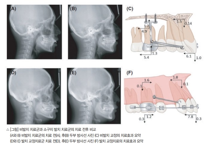 연구결과 비발치 치료군에서는 수평피개가 평균 4.8mm(전 8.1mm → 후 3.3mm), 발치 치료군에서는 5.4mm(전 8.4mm→ 후 3mm) 감소했다. 두 실험군에서 상악 전치의 수직적, 시상적 변화는 유의한 차이를 보이지 않았다. 또한 비발치 치료군과 발치치료군의 비순각은 각각 7.5°, 9.4°만큼 증가했다.