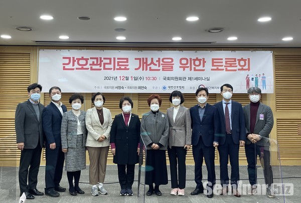 서정숙(국민의힘) 의원과 최연숙 (국민의당) 의원이 12월 1일 오전 10시30분 국회의 원회관 제1세미나실에서 공동개최한 ‘간호관리료 개선을 위한 토론회’를 진행했다.
