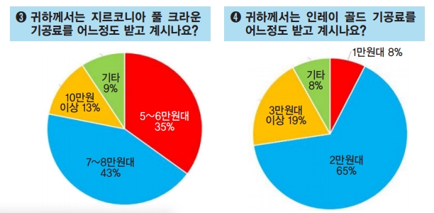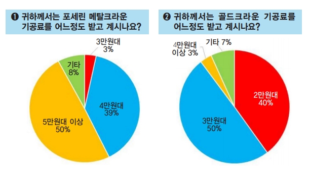 골드크라운 기공료는 3만 원대(50%)가 가장 많았다. 뒤를 이어 2만 원대(40%), 기타 (7%), 4만 원대이상은 3%에 불과했다.