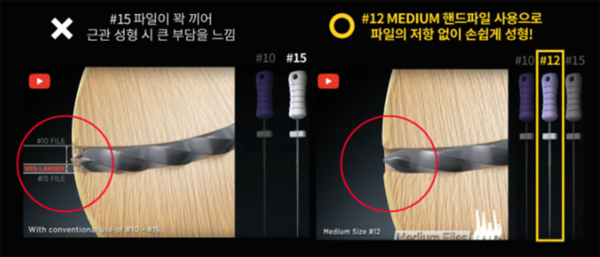 #12번 Medium 핸드파일 사용으로 파일의 간격을 좁혀, 근관 성형과 탐침부담을 줄여준다.