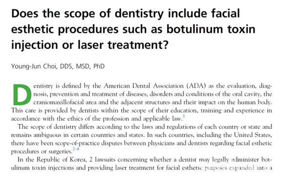 2016년 대법원 치과의사 보톡스 판결 미국치과의사협회지(JADA) 게재