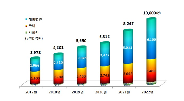 이 중 국내 매출 목표가 3,480억원, 해외 매출 목표가 6,100억원이며, 자회사를 통해서도 420억원의 매출을 올릴 계획이다. 영업이익 목표는 1,700억원이다.