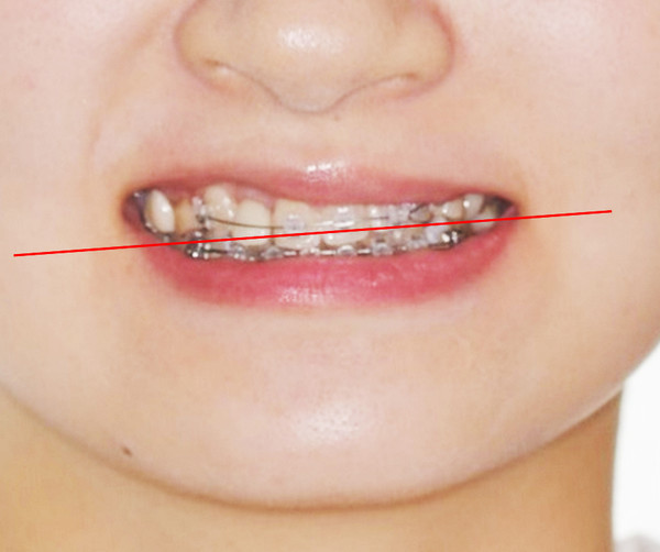 초진시부터 마무리까지 양측 견치 tip을 연결한 선을 기준으로 frontal occlusalplane의 변화를 비교 시occlusal canting의 개선을 확인할 수 있습니다.