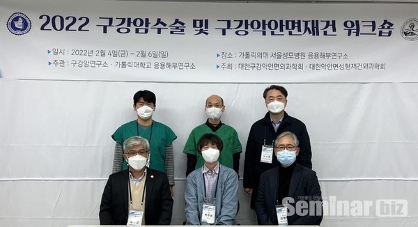 대한구강악안면외과학회(이사장 김형준)·대한악안면성형재건외과학회(회장 김선종)가 주최한 '2022년 구강암수술 및 구강악안면재건 워크숍(구 카데바 연수회)'이 지난 2월 4일(금)부터 2월 6일(일)까지 온라인과 가톨릭대 의과대학 응용해부연구소에서 개최됐다.