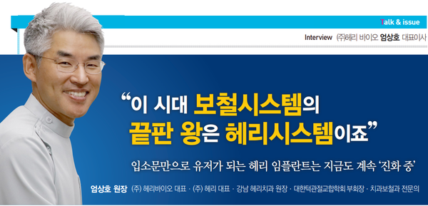 (주)헤리 엄상호 대표는 지난 10년간 헤리보철시스템의 결정체를 만들기 위해 전념해 왔다. 헤리(HERI)는 H(Healthy) E(Esthetic) R(Retrievable) I(Implant)의 각 단어의 ini tial로 건강하고 아름답고 유지관리가 편리한 임플란트라는 의미를 담고 있다.