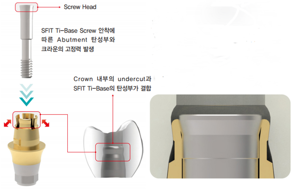 Abutment와 Crown도 손상없이 분리되기 때문에 유지·보수가 편리한 것도 장점이다. 또한 시멘트 없이도 200Ncm 이상 우수한 유지력이 특징이다.