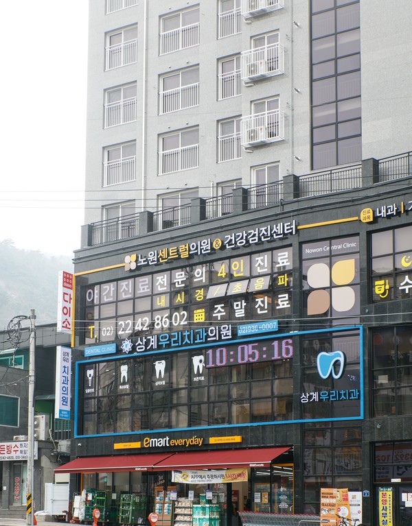 아파트와 주택이 공존하는 이 곳은 나이드신 환자분들도 많지만 젊은 직장인도 많은 곳이다. 상계우리치과는 다이소가 인접하고 이마트 편의점이 있는 삼거리에 위치하고 있어 유동인구도 많은 편이다.