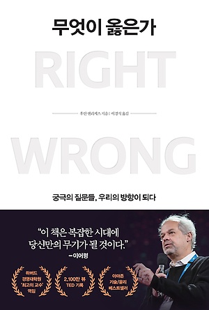 마이클 샌델의 『정의란 무엇인가』가 정치철학자들이 남긴 정의의 개념을 환기시키고 유발 하라리의 『사피엔스』가 문명을 통해 인류의 과거를 살폈다면, 『무엇이 옳은가』는 기술의 발달과 사유의 변화를 통해 인류에게 필연적으로 다가올 미래의 지도를 펼쳐 보인다.