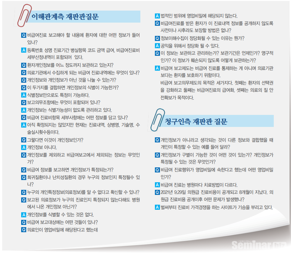 이미 비급여진료비용고지제도를 통해 의료기관이 보유, 관리, 공개하고 있으므로 영업비밀에도 해당하지 않는다.”는 논리를 펼쳤다.