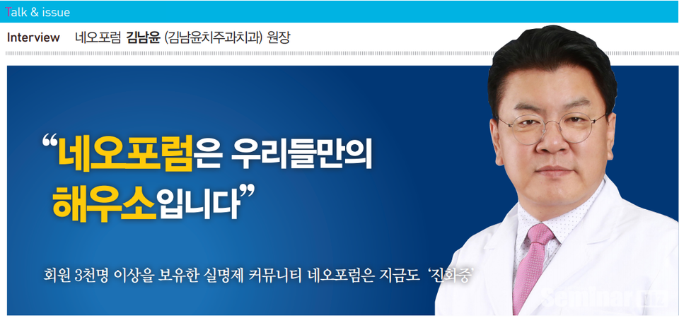 치과계에서 네오 포럼의 의미를 묻는 질문에 김 원장은 “웹 기반 치과의사 커뮤니티가 생겼을 때 임상에서 오는 스트레스에 대한 해우소죠. "
