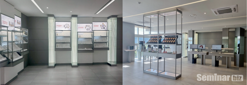 전시스토어는 마곡 오스템 본사 2층과 4층에 300평에 달하는 초대형 규모로 구축했다. 전시스토어는 임플란트, 디지털 임플란트, 의료장비, 재료 및 의약품, 교정, 인테리어 등 치과 진료에 꼭 필요한 제품과 서비스를 한 눈에 둘러보고 직접 체험할 수 있는 공간이다.