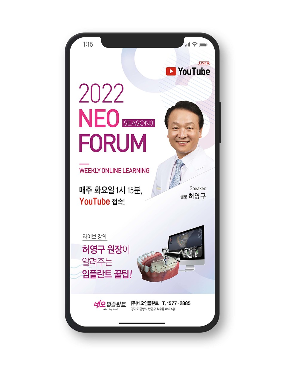 지난 2020년 코로나가 시작될 무렵 더 이상의 오프라인 세미나가 불가능한 상황에서 대체할 수있는 공간으로 출발했다. 첫 시작은 지난 2020년 4월 6일 '제거에 실패한 파절류 스크류 제거하기'를 주제로 온라인 강의를 시작하는 것으로 출발했다. 그 공지가 네오 포럼의 출발이 됐다. 네오 포럼은 현재 1,500 명이 넘는 유저를 보유한 포럼으로 성장했다.
