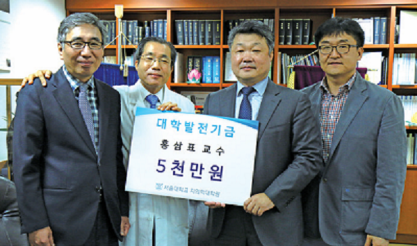 서울대학교 치의학대학원 구강병리학교실 홍삼표 교수가 제자들의 교육과 연구 환경에 도움이 되고자 서울대학교 치의학대학원(이재일 원장)에 대학발전기금 5천만원을 기부했다.