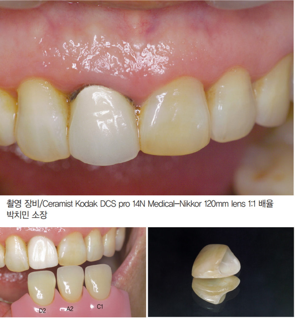 촬영한 색상정보는 메모리 카드에 담아 기공물과 함께 기공소에 보냈다. 주변치아와 잘 어울리는 수복물이 완성됐다.