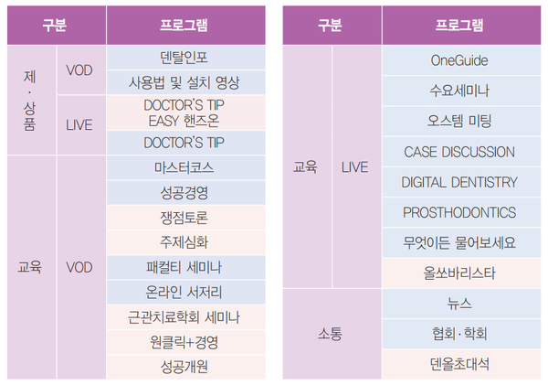 이 밖에도 선거, 총회, 전시, 학술행사 등 치과계 주요 행사 중계를 통해 시공간을 초월해 많은 치과의사들이 관람할 수 있도록 지원하고 있다. 치과계 단체 방송 제작과 송출 지원으로 치과계 동반성장에 기여하고 있다. 대한치과보존학회, 연세대치과병원, 대한치과감염학회 등 다양한 치과계 학회 및 협회 학술대회, 세미나의 영상 제작과 편집을 지원하고 있으며 현재까지 총 166편을 제작했다. 뿐만 아니라 SIDEX, GAMEX 등 치과계 대규모 행사 학술강연 촬영 및 송출을 지원하고 있다.