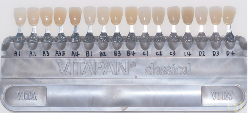 Shade guide는 치과도재회사에서 자사의 도재 파우더에 맞는 채도와 명도 그리고 색상을 기준으로 만든 색견본이다. 치과와 치과기공소에서 가장 많이 사용하는 shade guide 3종류와 사용 점유율은 VITAPAN classical 85%, 3D master 10% 그리고 Vintage halo 5%순이다.