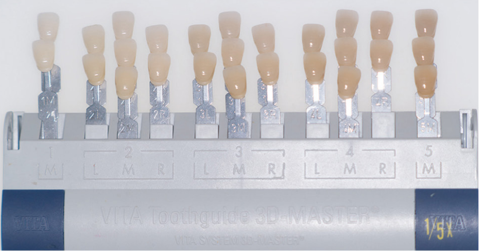 치과의사와 치과기공사가 소통하는 치아색에 대한 언어는 색상, 채도, 명도를 최소한으로 분류한 shade guide가 사용된다.
