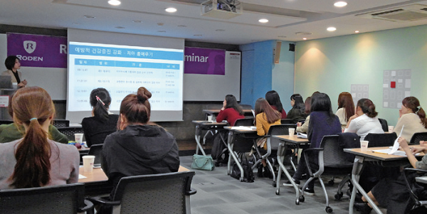 매년 정기적으로 실시하고 있는 ‘스텝 레벨업 세미나(Staff Level-up Seminar)’는 로덴치과의 직원으로서 기본적인 소양을 높이는 것은 물론 치과 진료서비스와 업무능력향상을 위한 다양한 주제로 진행되고 있다.