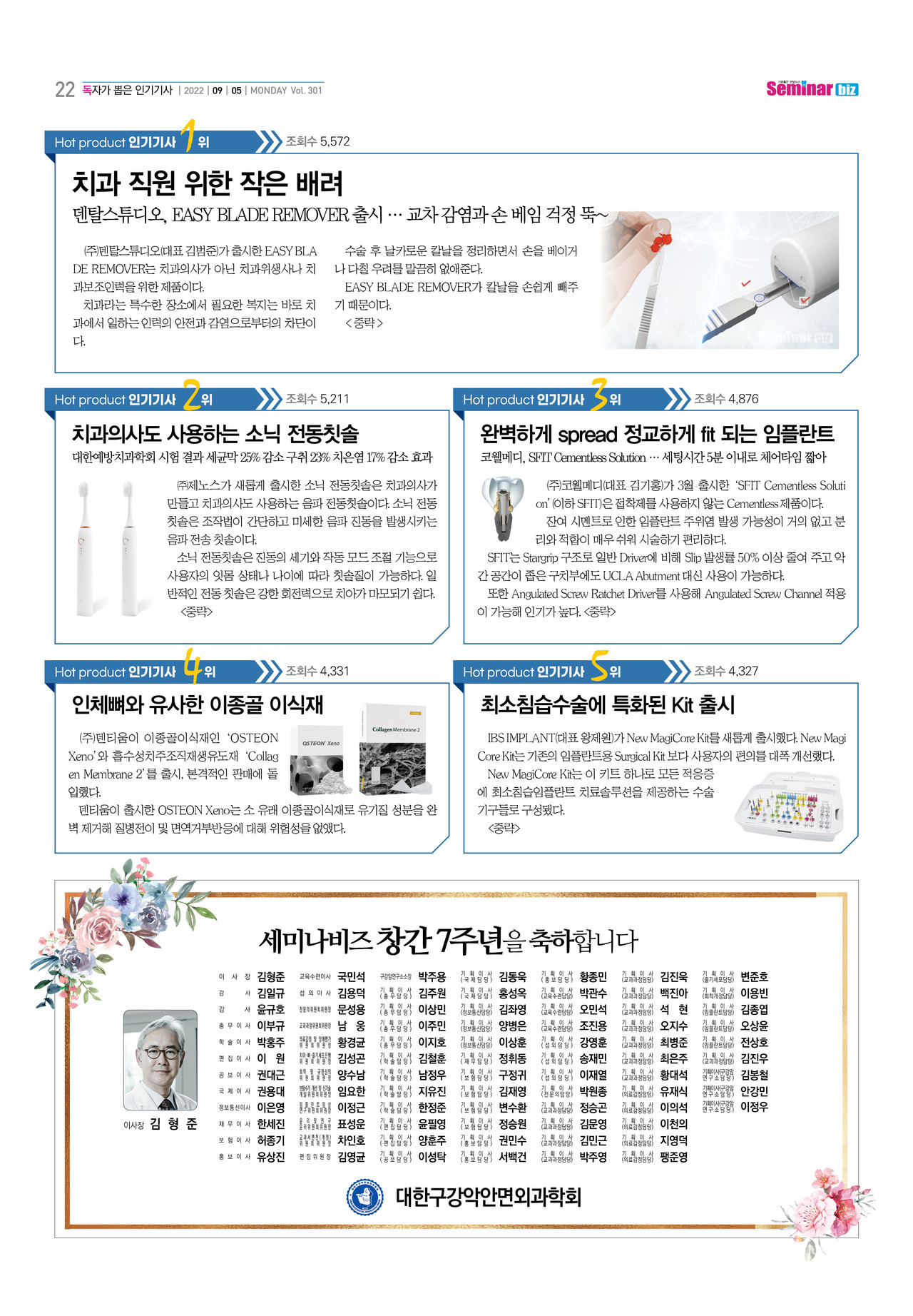 치과 직원 위한 작은 배려 치과의사도 사용하는 소닉 전동칫솔 완벽하게 spread 정교하게 fit 되는 임플란트 인체뼈와 유사한 이종골 이식재 최소침습수술에 특화된 Kit 출시 [덴탈뉴스포토뉴스] 덴탈스튜디오 2024 베트남 심포지엄