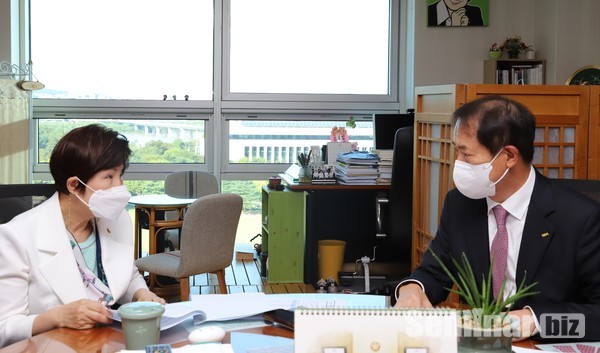 전혜숙 의원은 박 협회장의 설명을 주의 깊게 들은 다음 이들 현안의 현재 추진 상황, 합리적인 대안에 대해 추가 질의를 하며 조언을 건넸다.