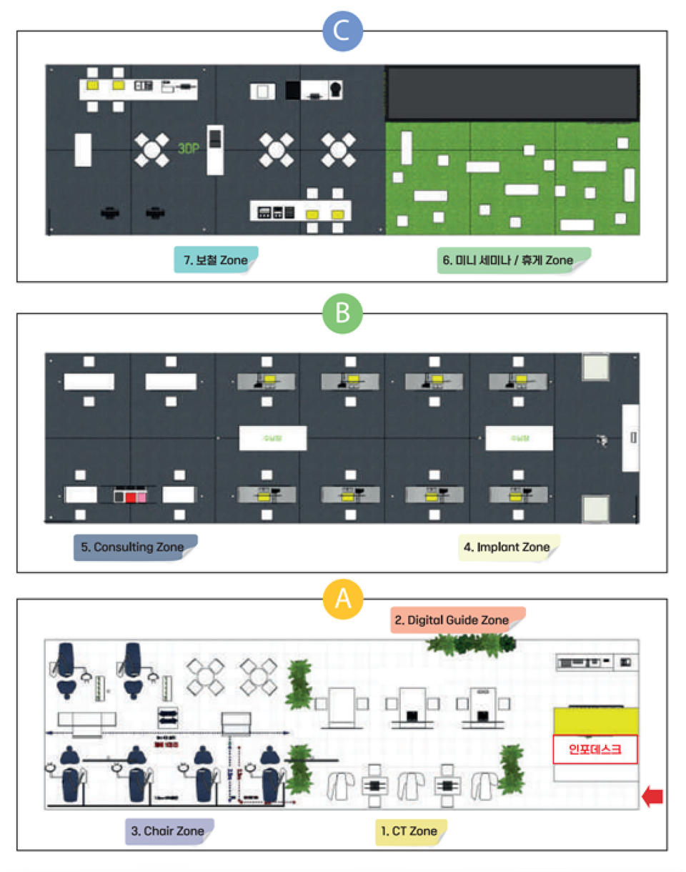 컨설팅 존에서는 치과인테리어에 대한 1:1 상담이 진행된다. 또한 인테리어와 함께 장비, 임플란트를 포함한 최종 토탈 견적서를 제공한다. 인태리어 상담을 하면 도면을 제작해 주는 이벤트를 진행한다.