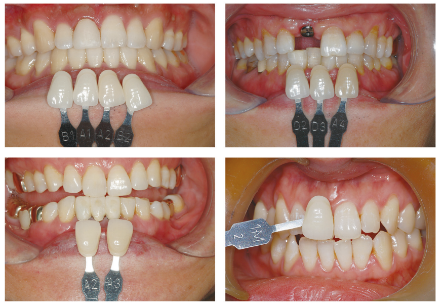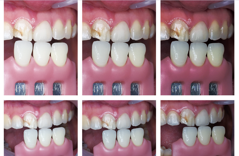 Shade tab B1, A1, B2 색상 표현이 어둡다. 하지만 좌측 사진보다는 색상 표현이 우수하다. 치아 사진 촬영은 노출값이 매우 중요한 역할을 한다.