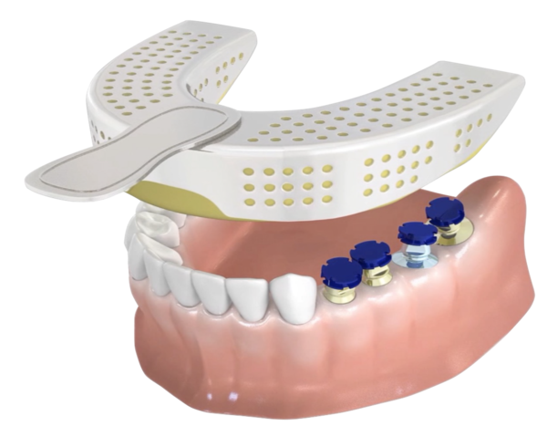 채득 후 분리된 Impression Coping에 아날로그를 결합하고 인상재 위에 재위치시킨 뒤 인상재를 이용해 캡 모델을 제작하면 된다. 임상 케이스에 따라 바이트 캡 상단면을 버로 삭제할 수 있고, 필요한 양만큼 패턴 레진을 적용하면 정밀한 바이트 채득이 가능하다.