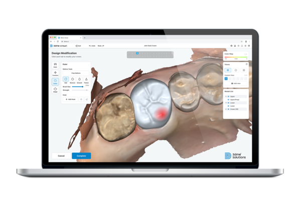 메디트 구강스캐너를 이용하고 있는 치과병원의 경우, 환자로부터 획득한 구강스캔 데이터를 3Dme Crown으로 연동해 최적의 크라운 디자인을 쉽고 빠르게 완료할 수 있게 된다. 이와 같은 워크 플로우는 치과의사가 유닛 체어에서 환자와 직접 보철물 디자인을 확인하며 상담할 수 있다. 밀링 머신이나 3D 프린터를 보유한 경우라면 구강스캔 직후 빠른 디자인 작업으로 가공까지 완료할 수 있어 원데이 보철이 가능하다.