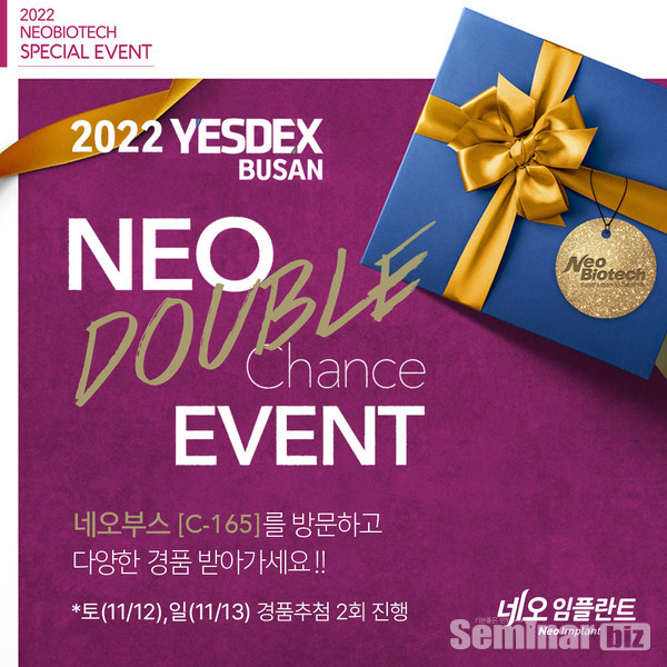 (주)네오바이오텍(대표이사 허영구, 이하 네오)이 오는 11월 12일, 13일 벡스코에서 개최되는 YESDEX 2022 (영남국제 치과학술대회)에서 다양한 프로모션과 이벤트를 선보인다.