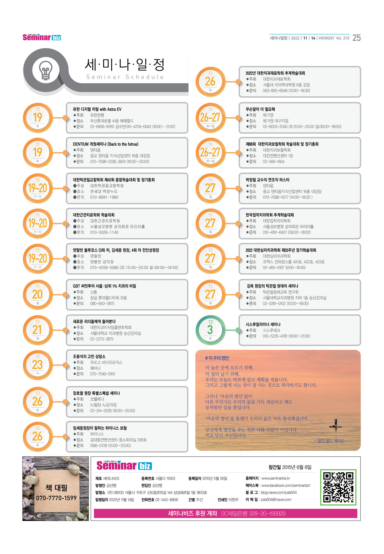 좋아요0훈훈해요0슬퍼요0후속기사 원해요0 페이 닥터들 이제는 개원을 준비하고 있다 세미나비즈 webmaster@seminarbiz.kr 다른기사 보기 저작권자 © 덴탈뉴스 무단전재 및 재배포 금지 당신만 안 본 뉴스 [알파베러정재욱대표] 좋은 제품 검증된 제품만 모은 알파베러 유한 evertis 임플란트 성공 위한 워크샵 진행 “미용치과 안티에이징이 치과의 블루오션” 덴탈스튜디오, 블랙니들홀더 출시 서울대학교치과병원, 키르기스스탄 장애 어린이위한 사랑의 의료봉사 펼쳐 연송캠퍼스 개관10주년 기념식 및 SID 명예의 전당 제막식 네오바이오텍, 즉시로딩 임플란트 ALX-IT 11월 세미나 전국 진행 [알파베러정재욱대표] 좋은 제품 검증된 제품만 모은 알파베러 개의 댓글 회원로그인 작성자 비밀번호 댓글 내용입력 댓글 정렬 최신순 추천순 답글순 BEST댓글 BEST 댓글 답글과 추천수를 합산하여 자동으로 노출됩니다. 닫기 더보기 댓글삭제 삭제한 댓글은 다시 복구할 수 없습니다. 그래도 삭제하시겠습니까? 비밀번호 닫기 댓글수정 댓글 수정은 작성 후 1분내에만 가능합니다. 본문 / 400 비밀번호 닫기 내 댓글 모음 닫기 주요기사 중국 의료기기 1등급 인허가 취득 점빵치과 고민! 한자리서 해결 완성도높은 투명교정 솔루션 나노라이너 치과의사들의 만성고민 해결 신경치료가 혈당과 지방대사까지 개선 골이식 전략과 덴티움 제품 활용 노하우 공유