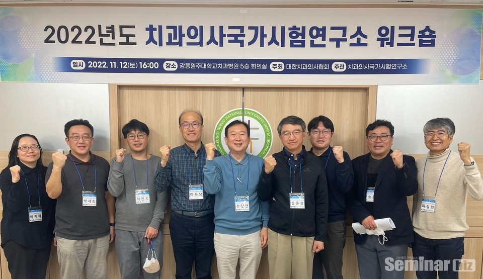 대한치과의사협회 치과의사 국기시험연구소(소장 전양현)(이하 ‘국시연구소’)에서는 11월 12일(토), 13일(일) 양일간 강릉원주대 치대 5층 회의실에서 「2022 치과의사 국가시험연구소 워크숍」과 「2022년도 제3회 치과의사국가시험연구소 연구원 회의」를 연석으로 개최했다. <사진>