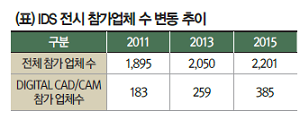지난 3월 독일 쾰른에서 열린 IDS 2015. 치과 관련 학술대회 및 전시회는 세계 치과계의 동향을 한 눈에 볼 수 있는 대표적인 전시회다. 이번 전시회의 특징은 디지털 캐드캠 장비와 프로그램을 전면에 내세운 참가업체 수가 증가하고 있음을 볼 수 있다. <표참조>