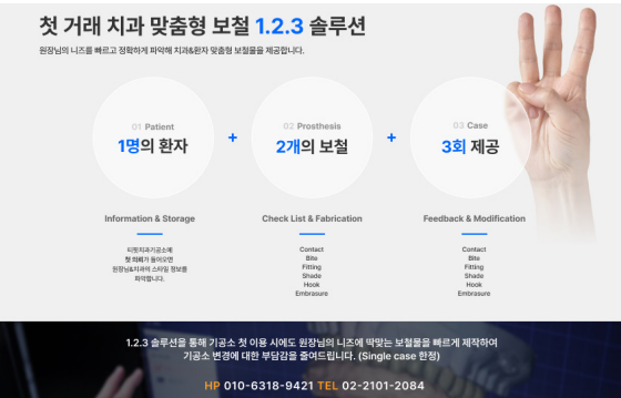 1.2.3 서비스는 ‘1명의 환자에게 2개의 보철, 3회를 제공’하는 서비스다. 티핏치과기공소에 첫 의뢰를 할 경우 소장과 GC Korea instructor가 치과 원장의 니즈와 Contact, Bite, Fitting, Shade, Hook, Embrasure 등 스타 일 파악에 집중한다.
