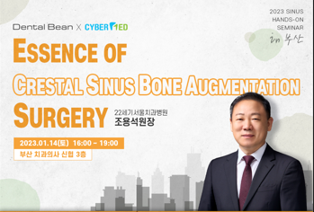 상악동 골증강술의 대부라 불리는 조용석(22세기서울치과병원) 원장의 ‘Essence of crestal sinus bone augmentation surgery’ 세미나가 진행된다. 총 10회로 이루어져 각 3시간씩 진행되며 2023년 1월 14일 부산에서 시작해 15일 대전, 2월 5일 광주, 21일 서울, 3월 8일 인천, 21일 일산, 4월 11일 서울, 17일 수원, 6월 24일 부산, 25일 대전으로 전국투어가 펼쳐진다.