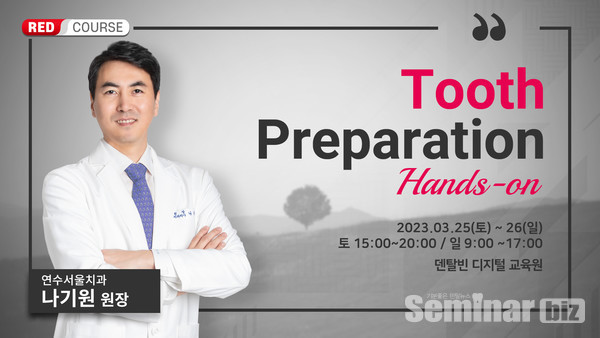 국내 최대 치의학 온, 오프라인 교육 플랫폼 덴탈빈(대표 박성원)이 오는 3월 25일부터 26일까지 Tooth preparation 세미나를 진행한다. 덴탈빈에서 열리는 이번 레드코스는 나기원 (연수서울치과) 원장이 연자로 나서 열띤 강의를 들려줄 예정이다.